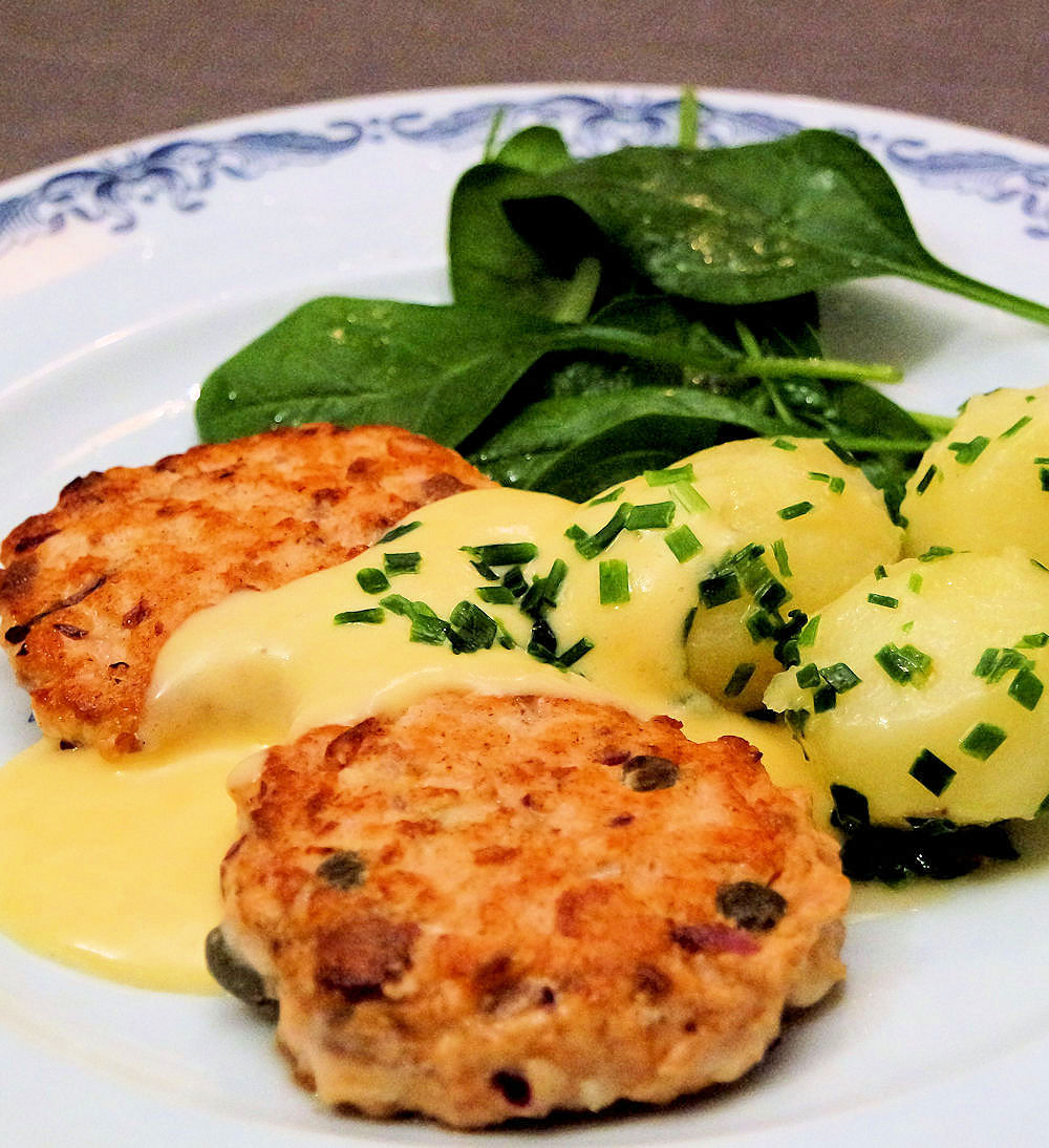 Spritsa eller lägg rotsakspurén vid sidan om och skeda såsen över fisk och